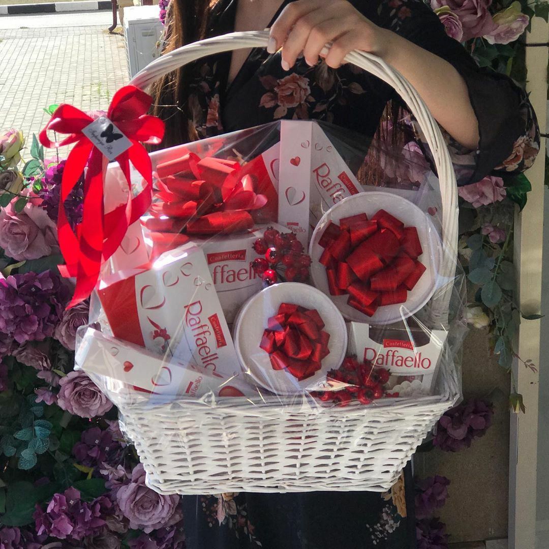 Корзина со сладостями «Raffaello» с доставкой по г Зайсан: вы можете заказать подарок в интернет магазине «Цветоландия» по цене за 29500 тенге.